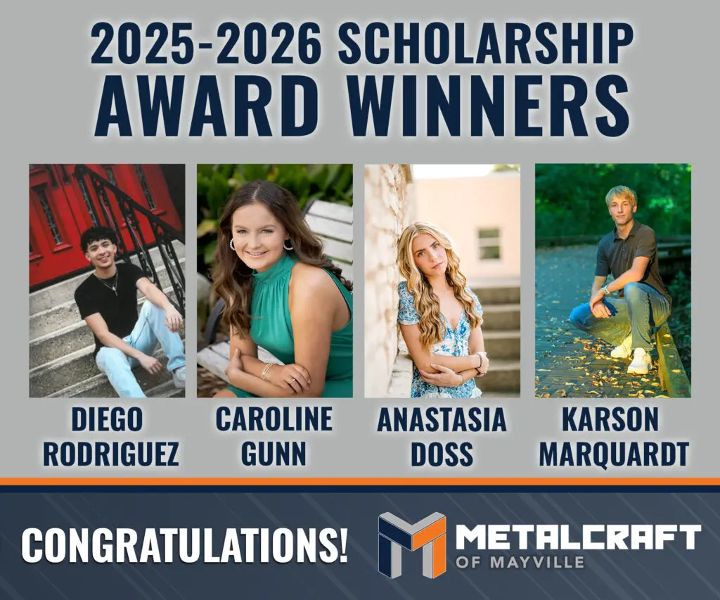 Mayville, Wis. – For the 2025-2026 school year, Metalcraft of Mayville proudly awarded 4, $3,000 scholarships (renewable for up to four years), for a total of $12,000 per student.
